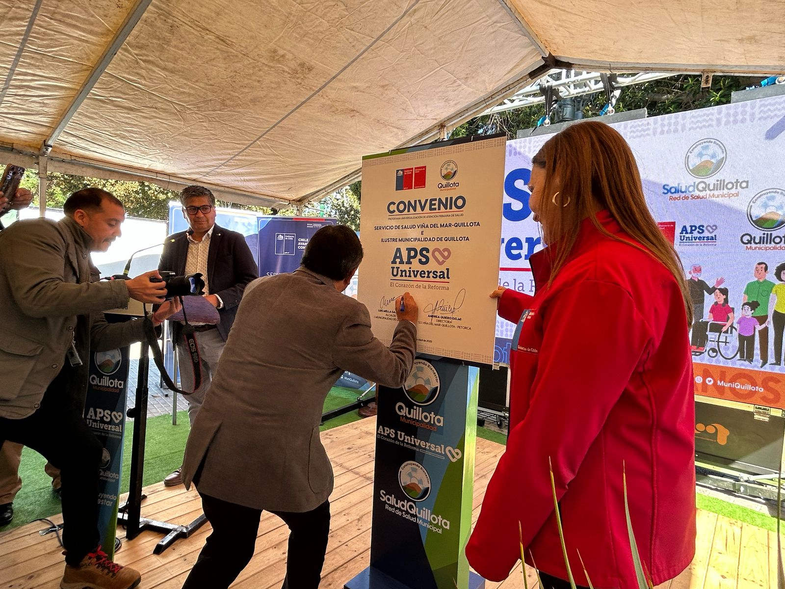 En un gran acto ciudadano en la Plaza de Quillota, se firmó el convenio de incorporación a la Universalización de la Atención Primaria de Salud y al inicio de las inscripciones territoriales de todas las personas que quieran integrarse a esta política de salud pública.