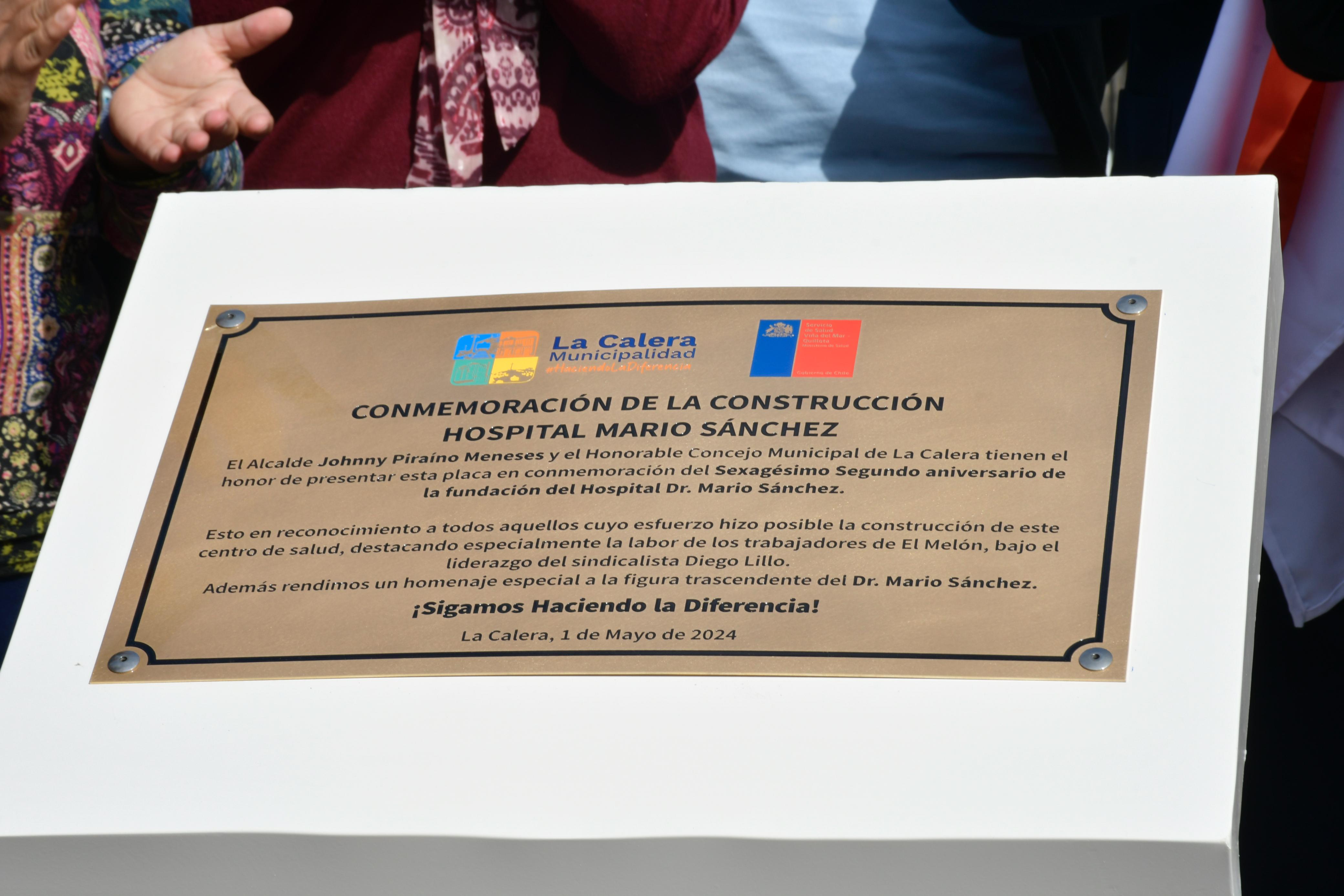 El miércoles 01 de mayo, Día Internacional del Trabajador y la Trabajadora, se vivió una emotiva jornada en el Hospital Dr. Mario Sánchez de La Calera, donde el Servicio de Salud Viña del Mar Quillota Petorca con la activa participación de autoridades regionales, comunales, sindicales provinciales y gremiales de la red SSVQP, rescató la historia del grupo de obreros de Cementos Melón, quienes con su compromiso y dedicación lograron en 1962 el levantamiento de este centro de salud.
