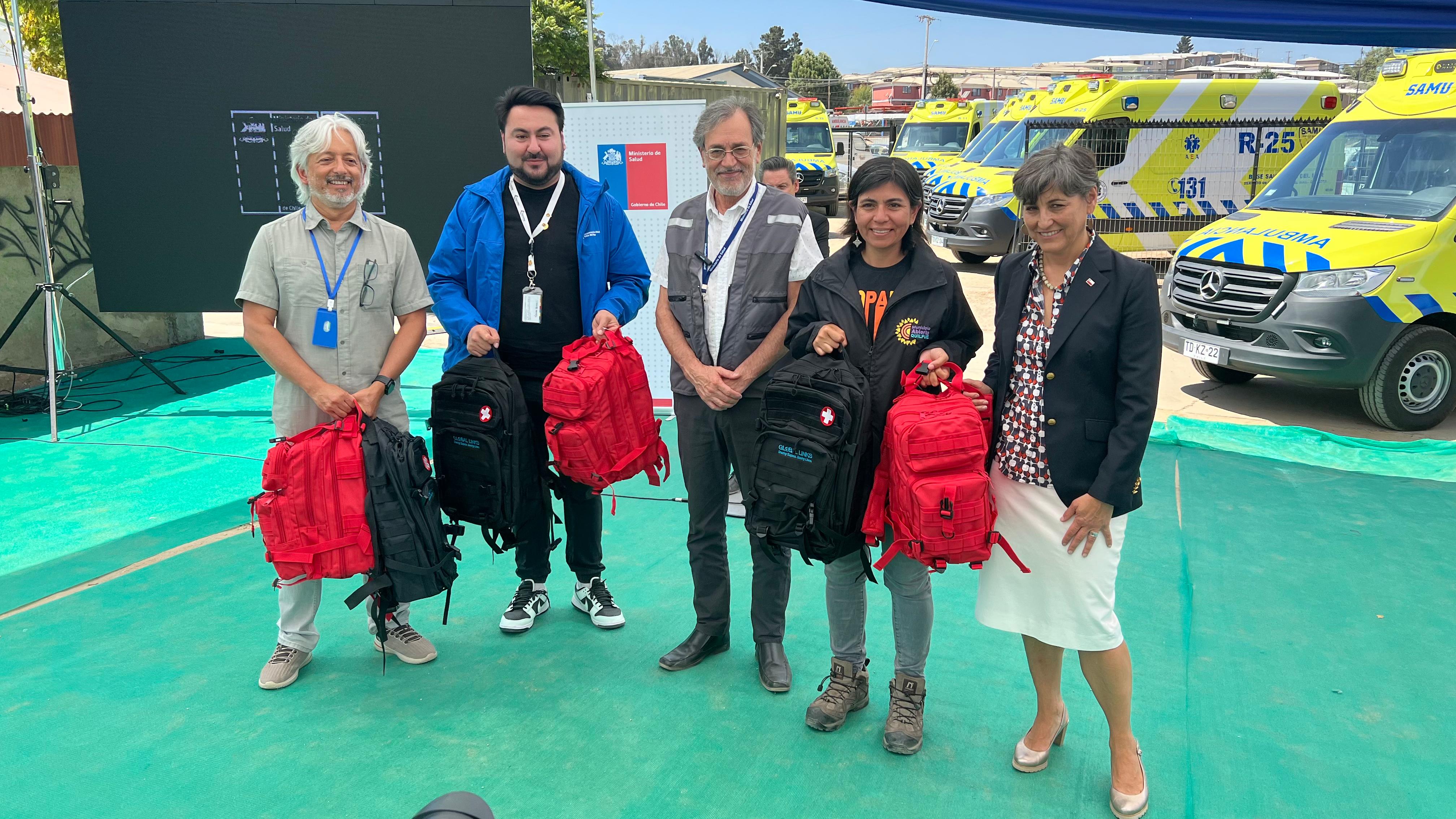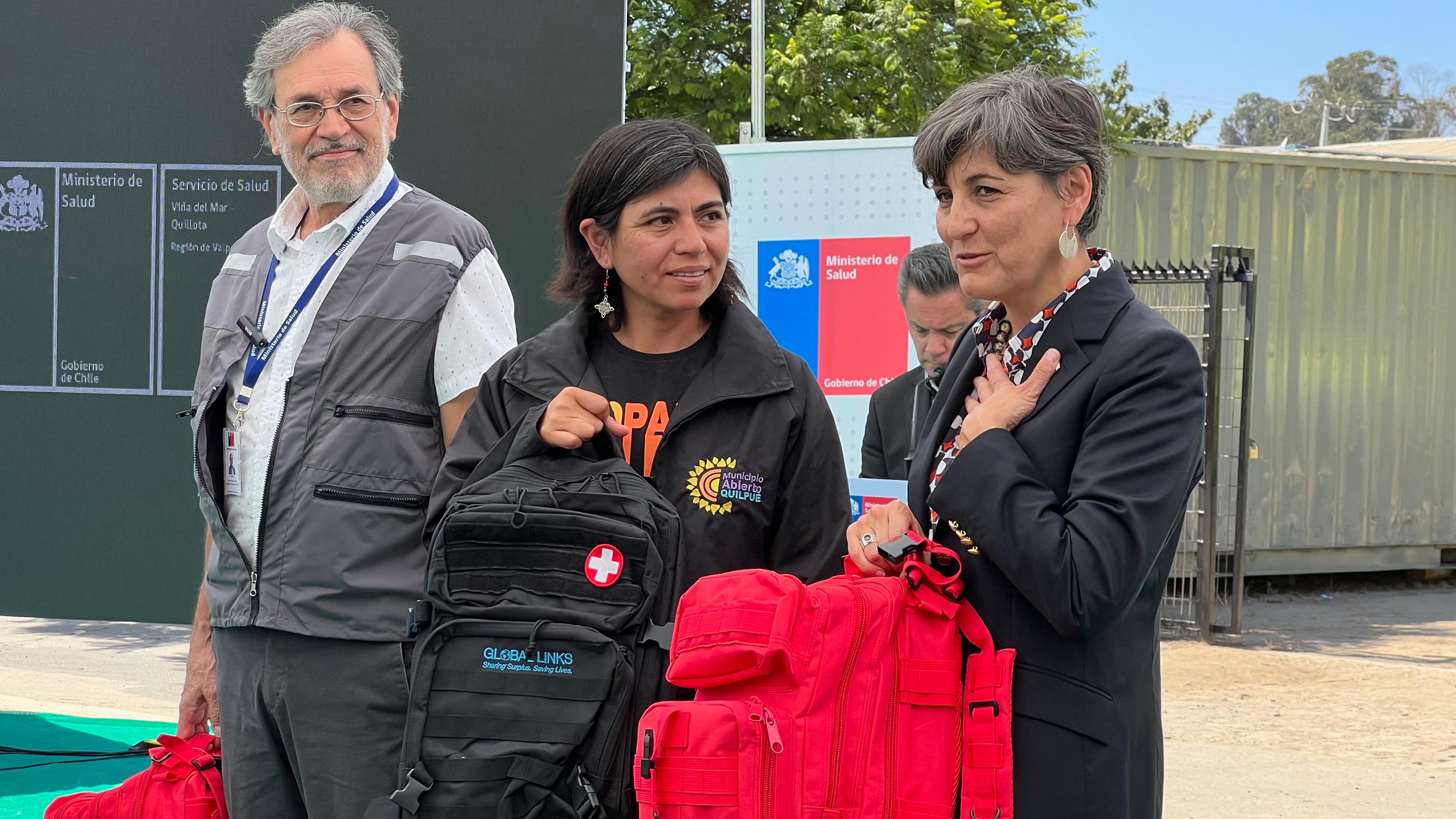 En la ocasión, también se hizo entrega de mochilas y kits de atención en terreno desde OPS a las comunas afectadas. Los materiales e insumos contenidos en dos tipos de mochilas están destinados a fortalecer las tareas asistenciales en terreno, permitiendo atención directa de pacientes, orientación diagnóstica y su manejo inicial.