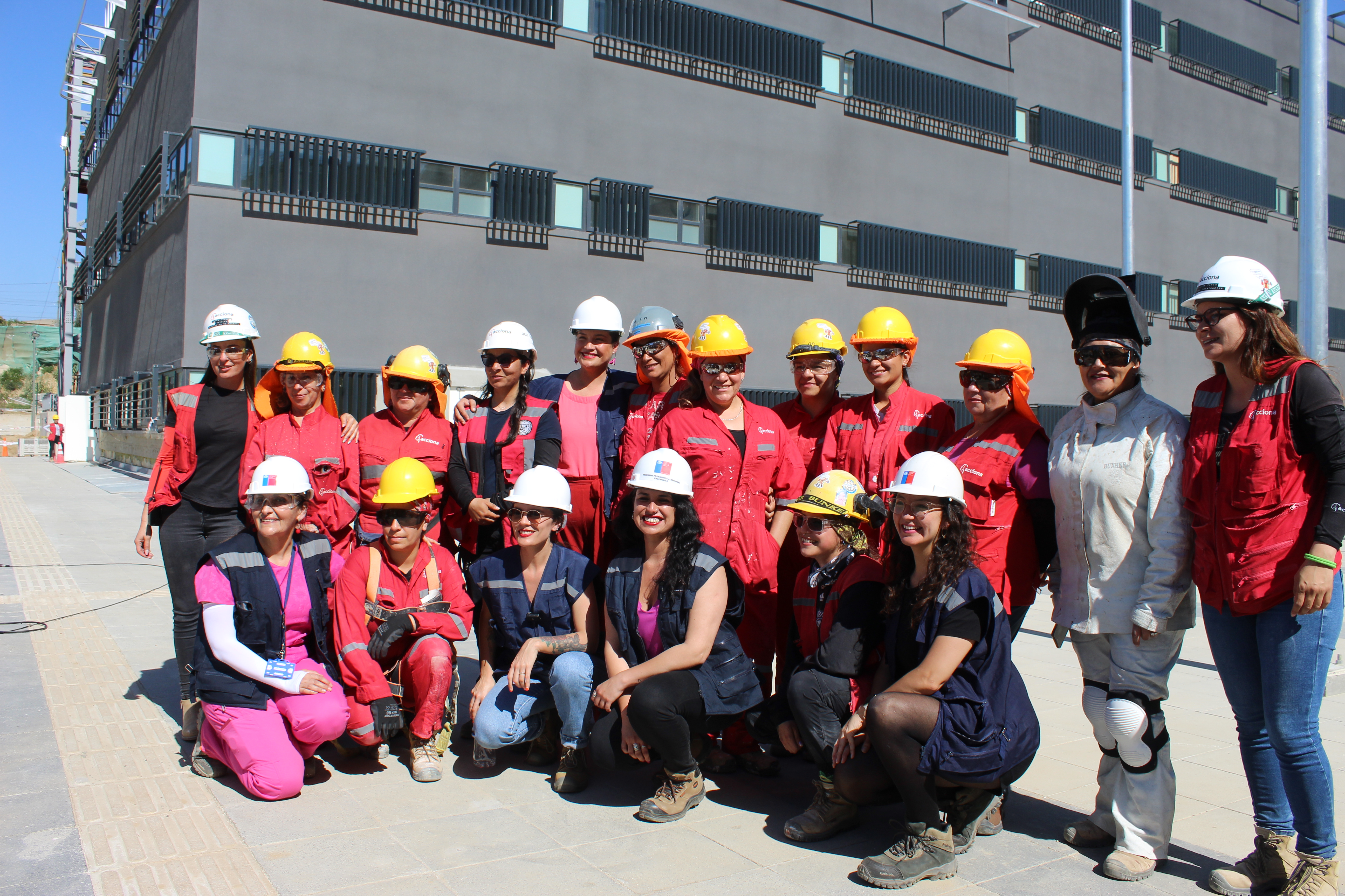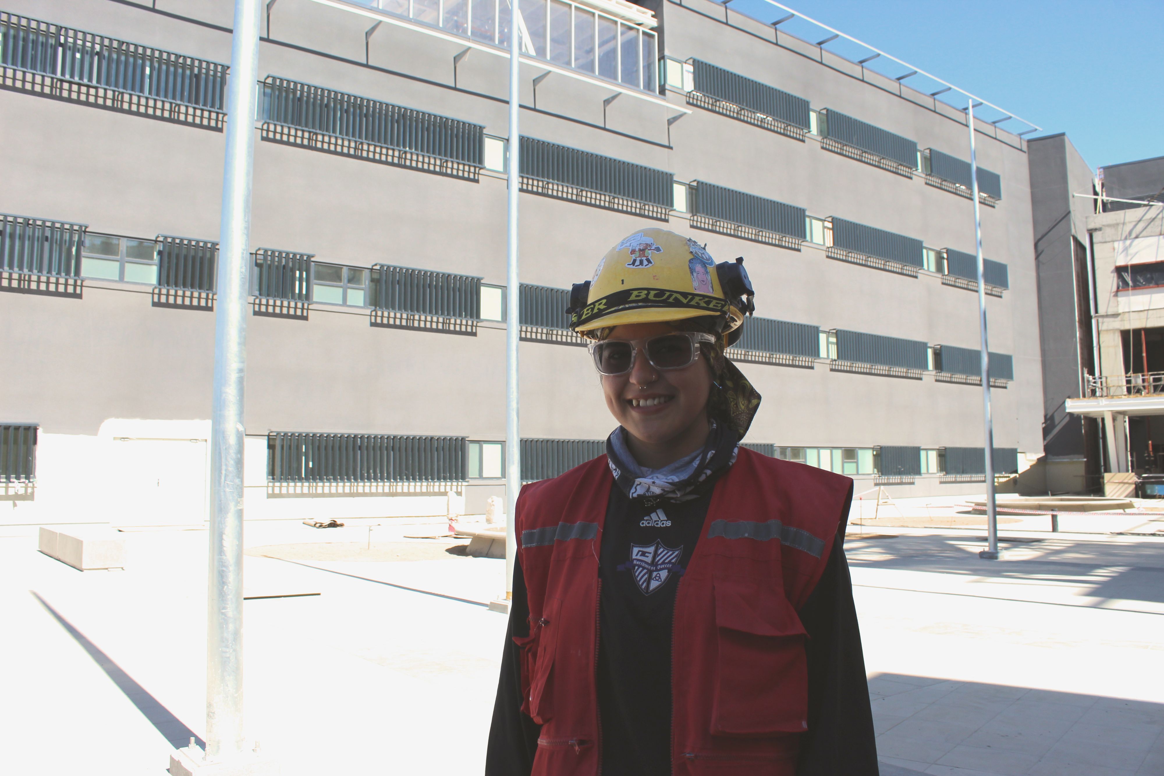 Alexia San Martín, es la más joven de las trabajadoras “ entré acá con 20 años y partí con carpintería y nos tiraron a terreno para empezar en la obra y luego me pasé a moldaje. Entonces hacía moldaje, carpintería y hormigón, y otras compañeras hacían fierro. Después hice pegas de obra civil: hormigón, sobrelosas, y quedé en tabiquería, que es lo que más me gusta, es entretenido estructurar, darle forma al edificio, se van viendo los cambios y se abren nuevas partidas”