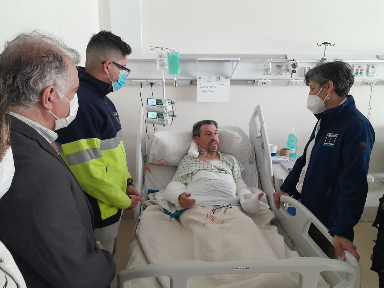 En la oportunidad, además, la Ministra Aguilera y el Subsecretario Araos visitaron también a don Leandro Ortega, vecino de Forestal, que resultó con quemaduras en pecho y extremidades superiores y se encuentra desde el jueves internado en el Hospital. Tras entrevistarse con el paciente y conocer su buen pronóstico de recuperabilidad, la Ministra se reunió con su par de Desarrollo Social y Familia Giorgio Jackson.