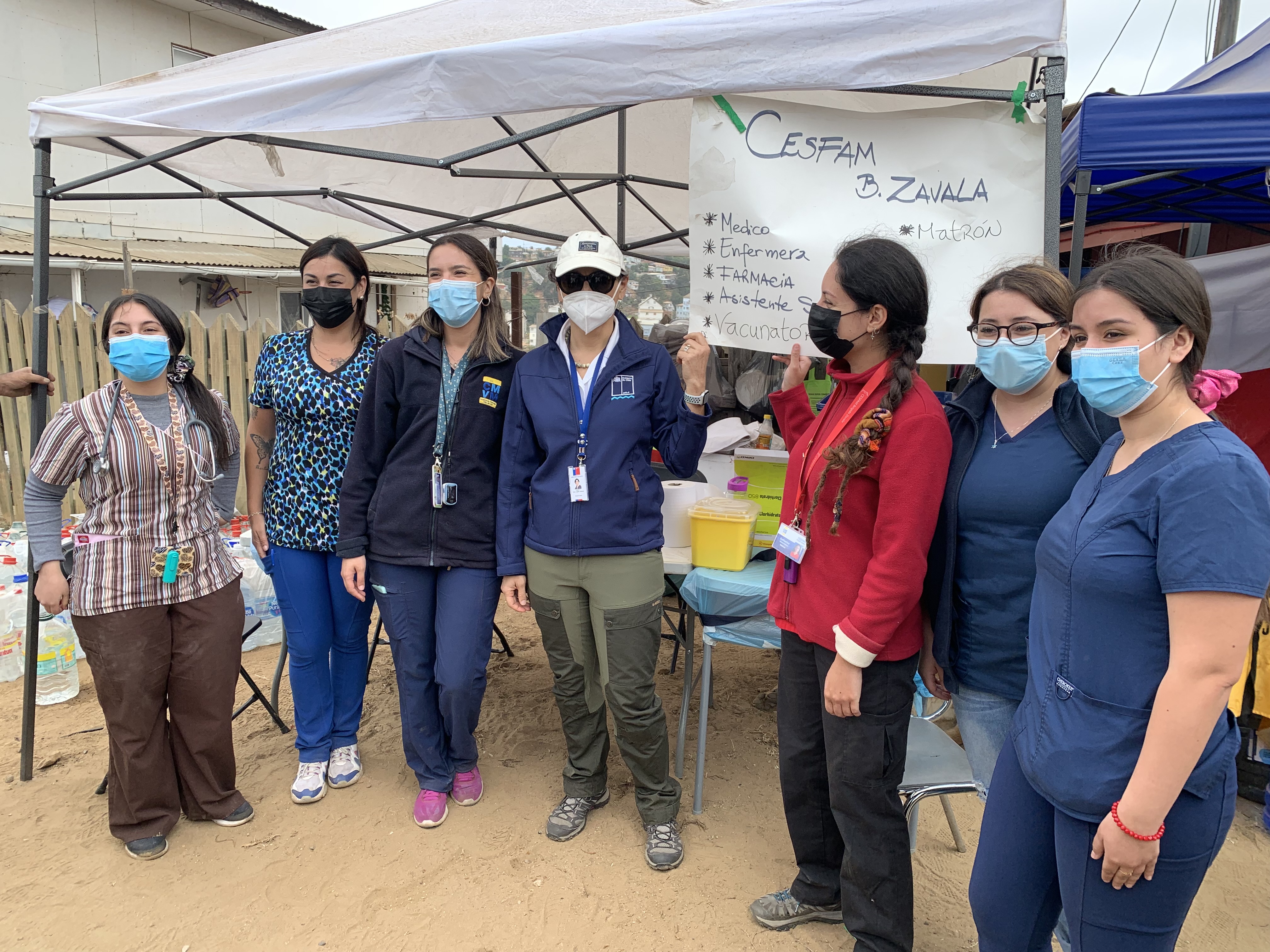 En tanto, en el sector Colina se instaló un punto de salud extramural donde existen dos puestos de salud dependientes de los CESFAM Brígida Zavala y CESFAM Las Torres. En dichas áreas de atención a familias y voluntarios existen equipos multidisciplinarios de funcionarios y funcionarias como médicos, enfermeras, enfermeros, matronas, químicos farmacéuticos y asistentes sociales de la Atención Primaria de Salud, que brindan prestaciones como la vacunación de tétanos, gestión de casos sociales, para la recepción y entrega de sillas de ruedas, bastones y materiales ortopédicos a quienes lo requieran.