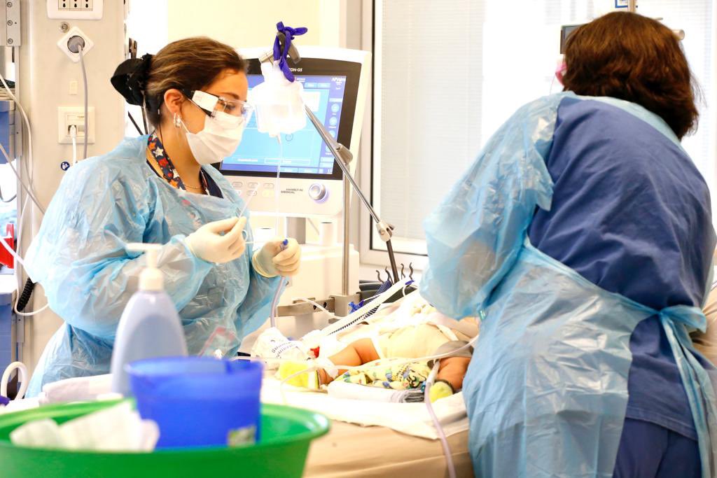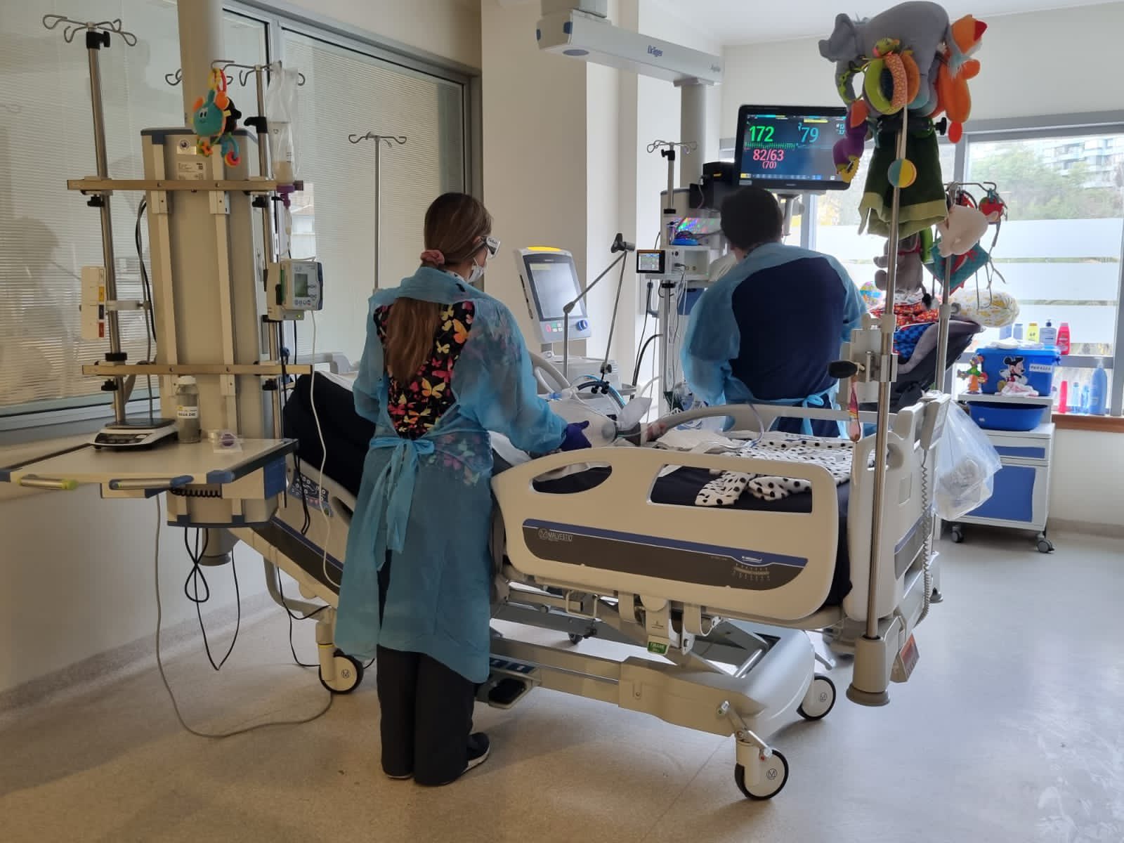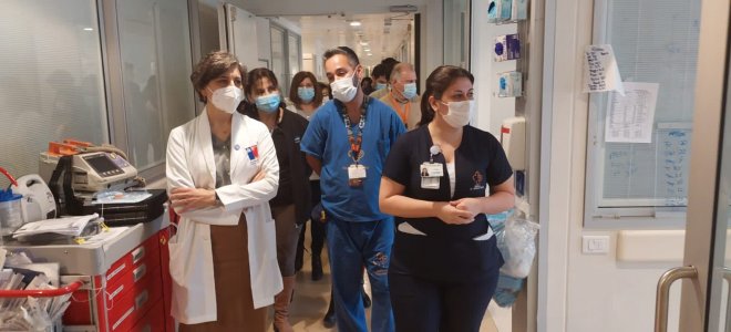 Por su parte, la Subdirectora Médica del establecimiento, Dra. Tatiana Aldunate, explicó que “tenemos un equipo pediátrico potente que se subió rápidamente al carro, con la experiencia de haber participado y apoyado al equipo adulto en COVID. Desde fines de marzo empezamos a ver cómo ampliar y complejizar las camas de UPC, sectorizar y aislar a los niños con sintomatología respiratoria y trasladar a los pacientes no respiratorios a otro lugar del Hospital. Hemos triplicado la capacidad de manejo de pacientes complejos con la ayuda tanto de UPC de adultos, como el séptimo piso, que aportó por lo menos 10 camas más de apoyo pediátrico y cirugía infantil también. Y en la Unidad de Emergencia Infantil aumentamos la capacidad de seleccionar a los pacientes de acuerdo a su complejidad, con dos selectores de demanda más apoyo de algunos puntos de camillas en otro sector, para los pacientes que requieren el apoyo inmediato con oxígeno.”