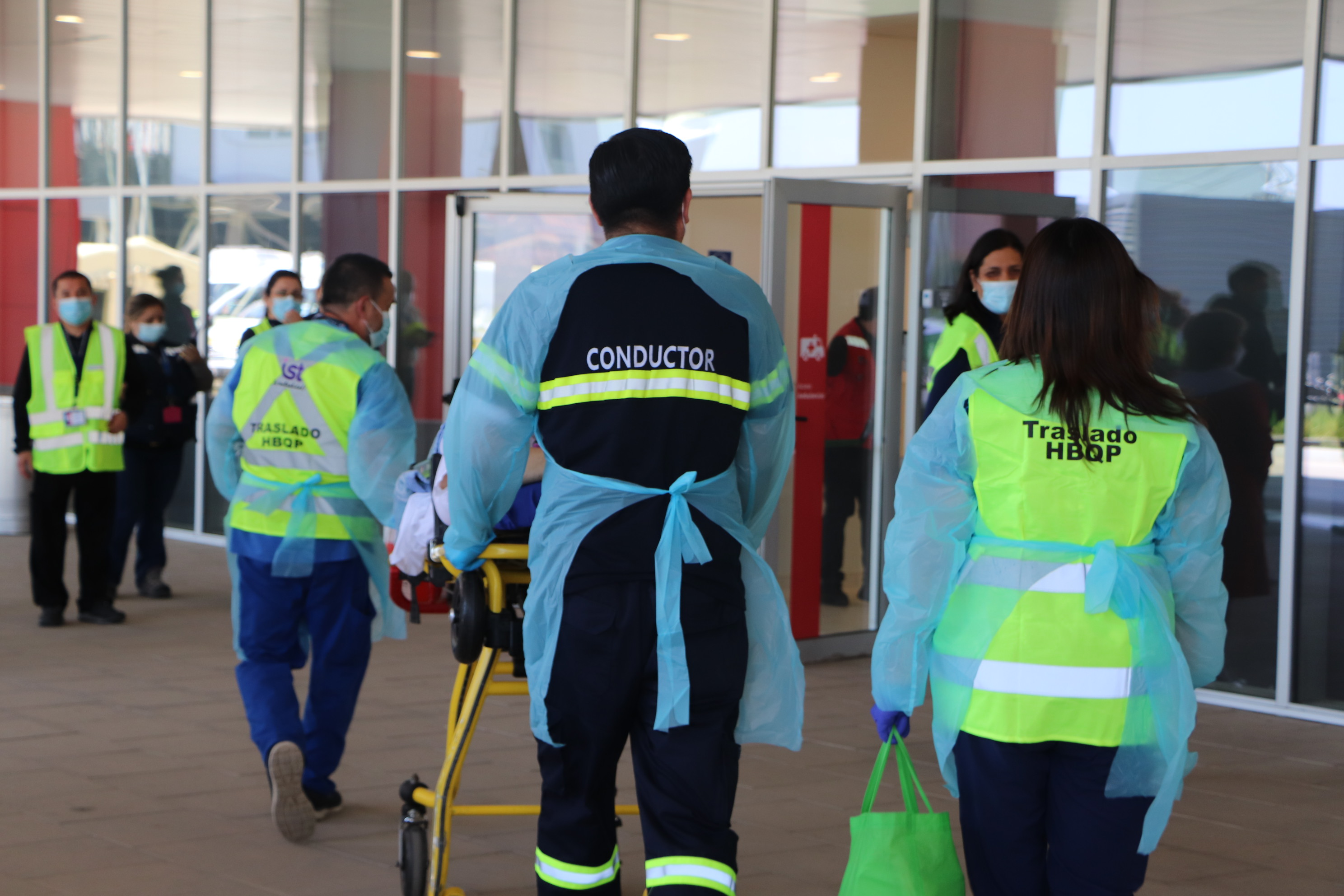 Entre los pacientes trasladados, figuran pacientes pediátricos, que eran cuidadosamente resguardados por los equipos asistenciales y luego recibidos por sus madres, en el nuevo Hospital. Así también los pacientes adultos, una vez ingresados, podían comunicarse por video llamada con sus familiares directos, para darles tranquilidad sobre el estado de sus seres queridos, como señala la Dra. Patricia Intriago, Jefa del Área Médico Quirúrgico HBQP: “Todos los pacientes ya llegaron a sus camas, no tuvimos ninguna complicación, todo fue de una manera muy exitosa. Los pacientes en este minuto, incluso, como para que la comunidad tenga la tranquilidad, ya fueron ubicados por la OIRS, así es que todos los pacientes adultos que podían entrevistarse con sus familias lo hicieron. Las familias quedaron muy contentas, y eso es algo que nos llena de cariño, porque nos humanizamos en este traslado; no fue un traslado frío, fue muy humano, y eso nos tiene muy contenta”.