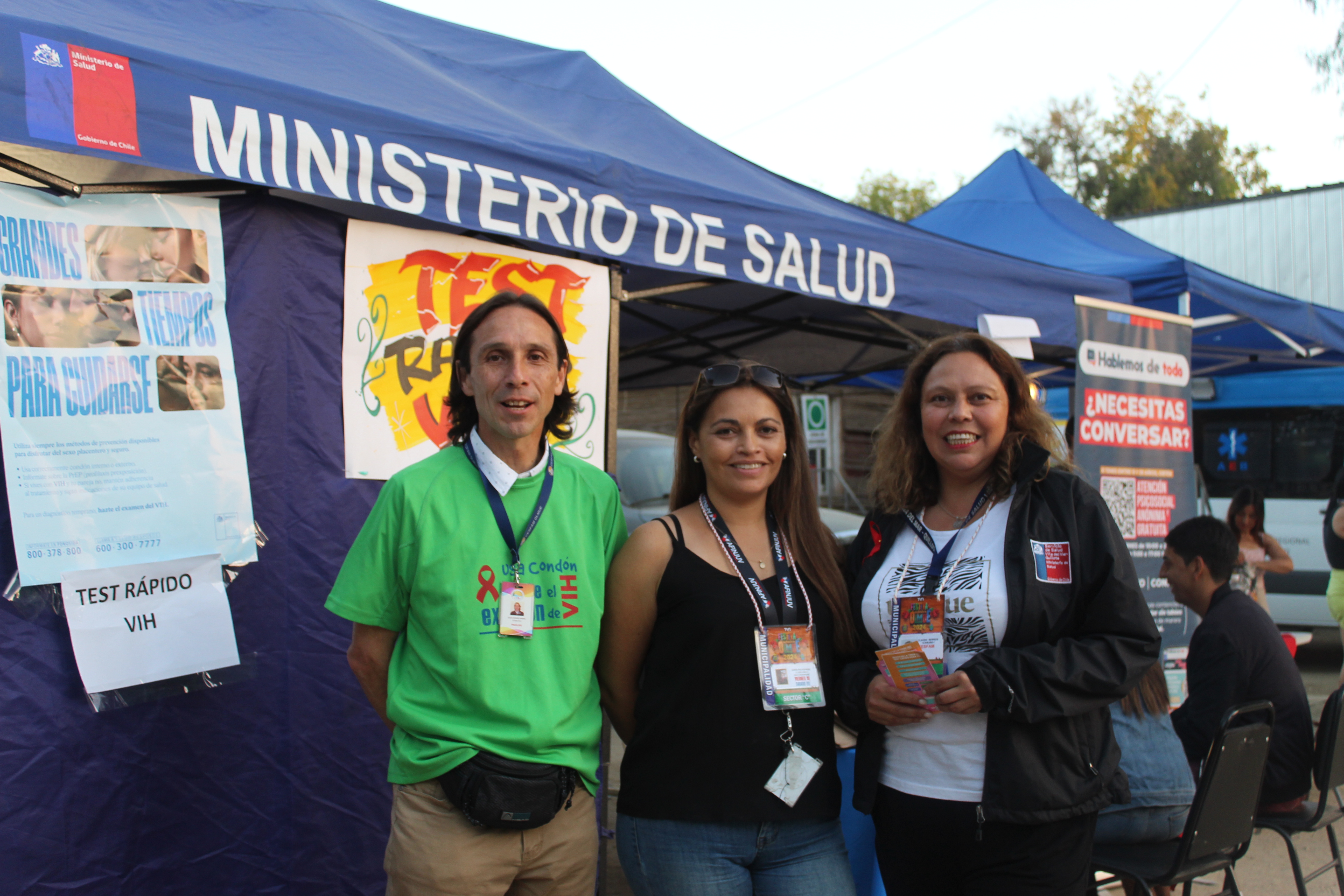 Equipos del Cesfam de Olmué, junto a equipos del INJUV, del Servicio de Salud Viña del Mar Quillota y de la Seremi de Salud se instalaron a un costado del histórico anfiteatro de El Patagual, para poder captar a personas interesadas en realizarse la toma de muestras rápidas de VIH, donde además recibieron consejería y orientación asociadas a la prevención y dónde acudir en la red de Atención Primaria.
