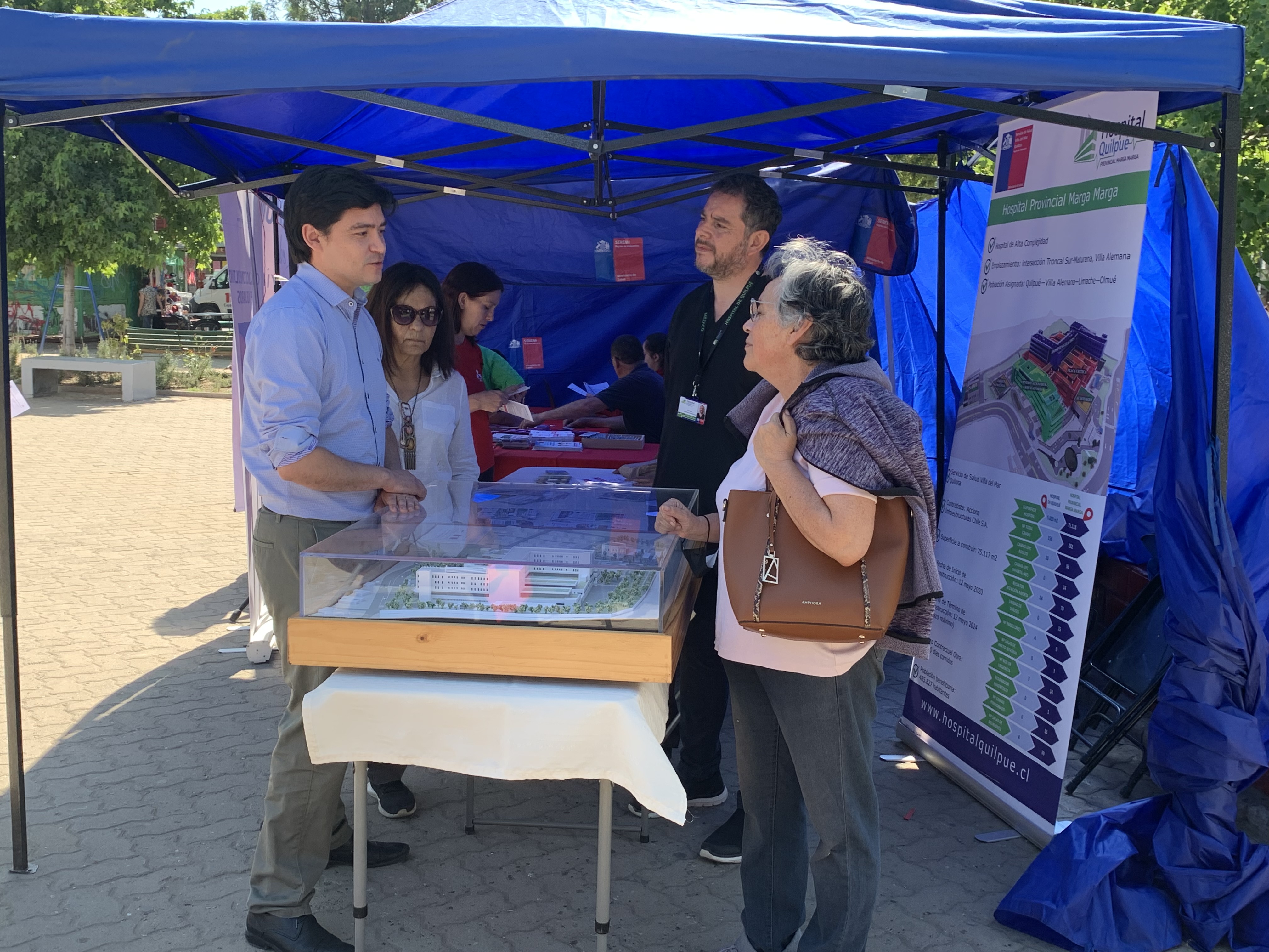 Dada la masividad de la feria, el horario y el lugar escogido para su realización, la Unidad de Puesta en Marcha del Hospital Marga Marga, acudió a la invitación extendida por el Servicio de Salud y presentó la maqueta, folletería e información del futuro Hospital a la comunidad. Obra, que actualmente alcanza alrededor de un 40% de su construcción y que tendrá a disposición de la comunidad, modernas y cómodas instalaciones, con tecnología de punta para una mayor resolutividad de sus prestaciones. El Dr. Arturo Zamora, Jefe de la Unidad de Puesta en Marcha del futuro Hospital, valoró la oportunidad de informar en estas ferias masivas los alcances del proyecto que, en un plazo de 3 años, será una realidad para la población de la Provincia. “Nosotros agradecemos cada oportunidad que tenemos de poder mostrar a la comunidad el proyecto. Eso es una cosa, muy importante para nosotros y la retroalimentación que recibimos de la comunidad nos va a ayudar a perfeccionar nuestros procesos y poder elevar las inquietudes que la comunidad tiene”.
