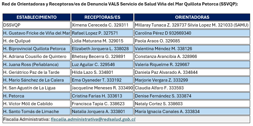 - Dirección del Servicio de Salud: Departamento Jurídico SSVQP.
