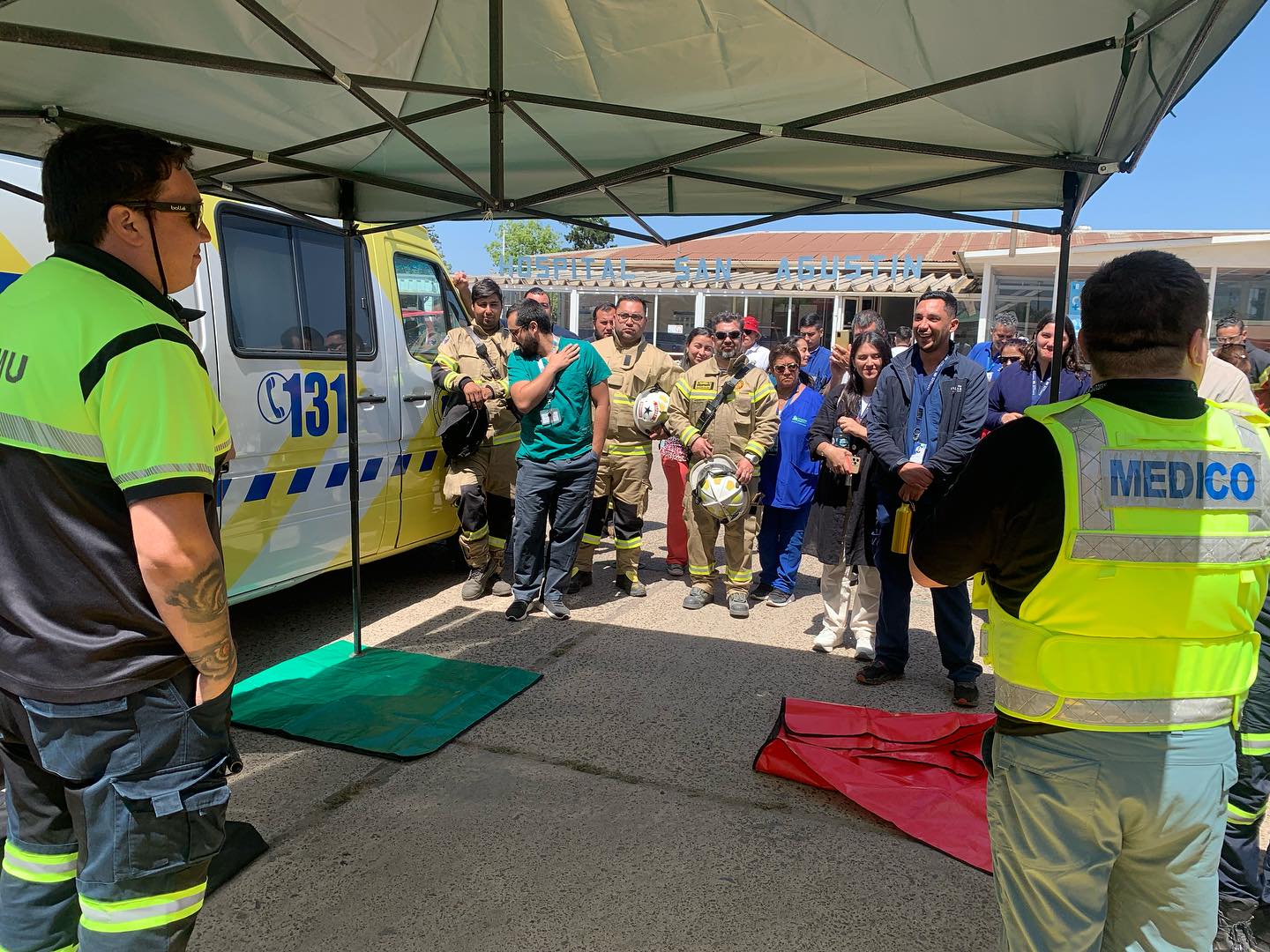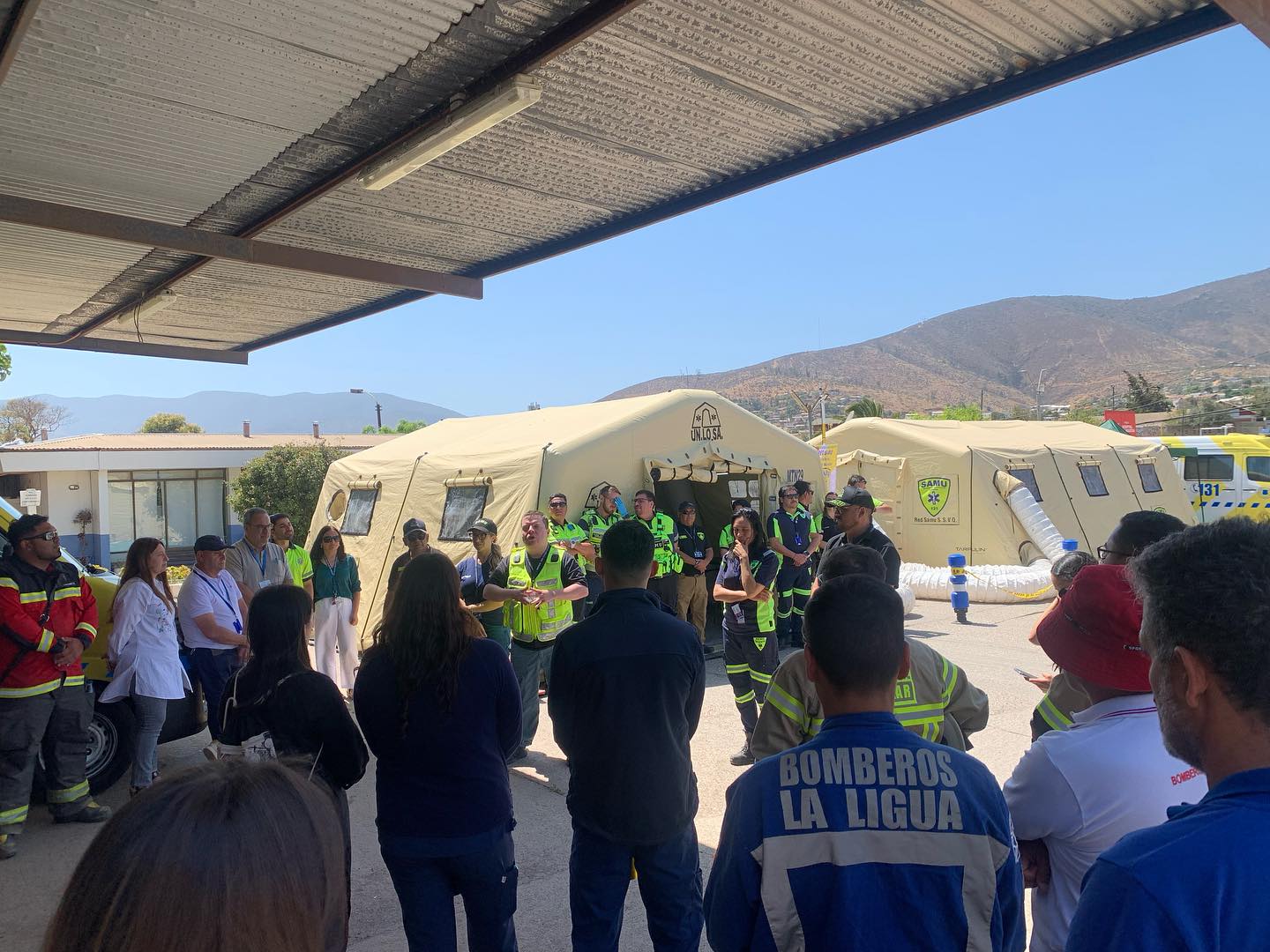 La actividad incorporó el despliegue del Puesto Médico Avanzado (PMA) en el Frontis del Hospital San Agustín de La Ligua para que las instituciones, funcionarios y la comunidad conocieran cómo y cuándo se implementa este dispositivo