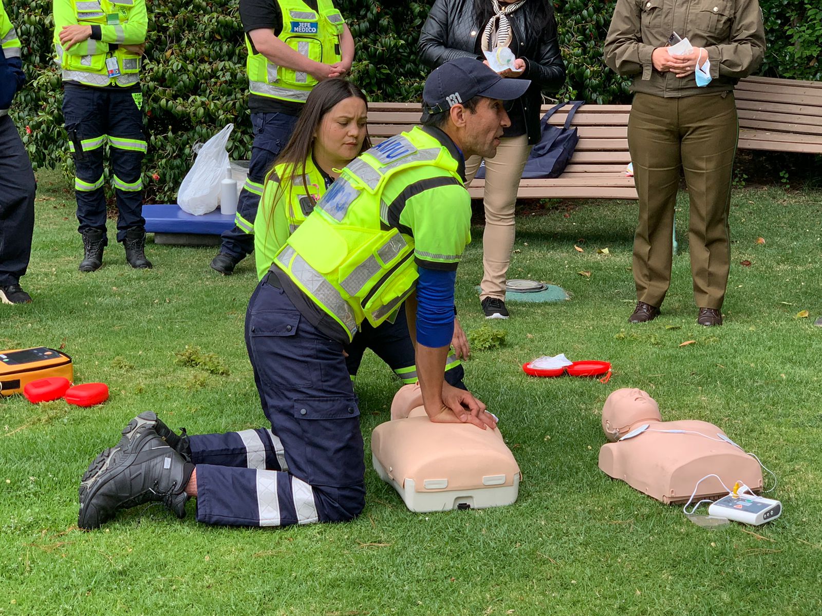 Con un completo despliegue de la red SAMU del Servicio de Salud Viña del Mar Quillota en conjunto con el Equipo de Salud de Presidencia, se realizó una capacitación para reforzar los conocimientos teóricos y prácticos sobre soporte vital básico, ante situaciones de emregencia, a los funcionarios y funcionarias del Palacio Presidencial de Cerro Castillo en la Ciudad Jardín.