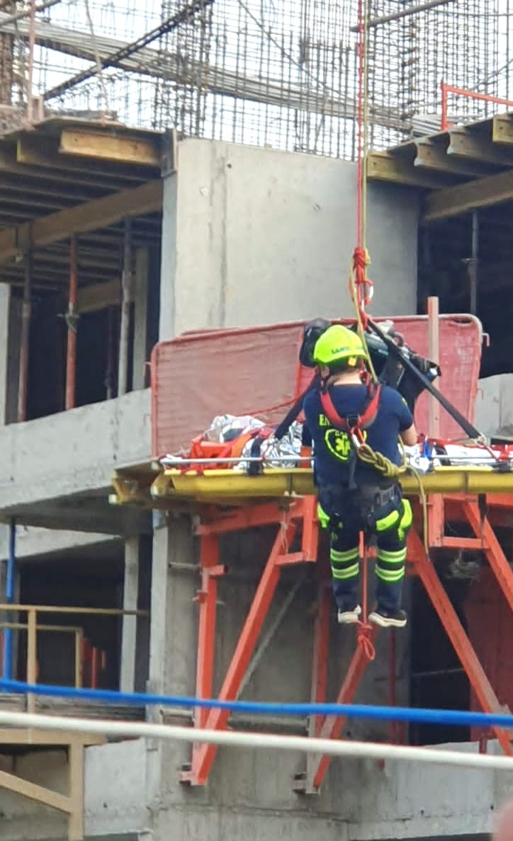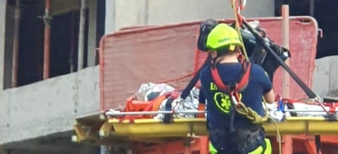 SAMU SSVQ realizó rescate en altura de trabajador de la construcción
