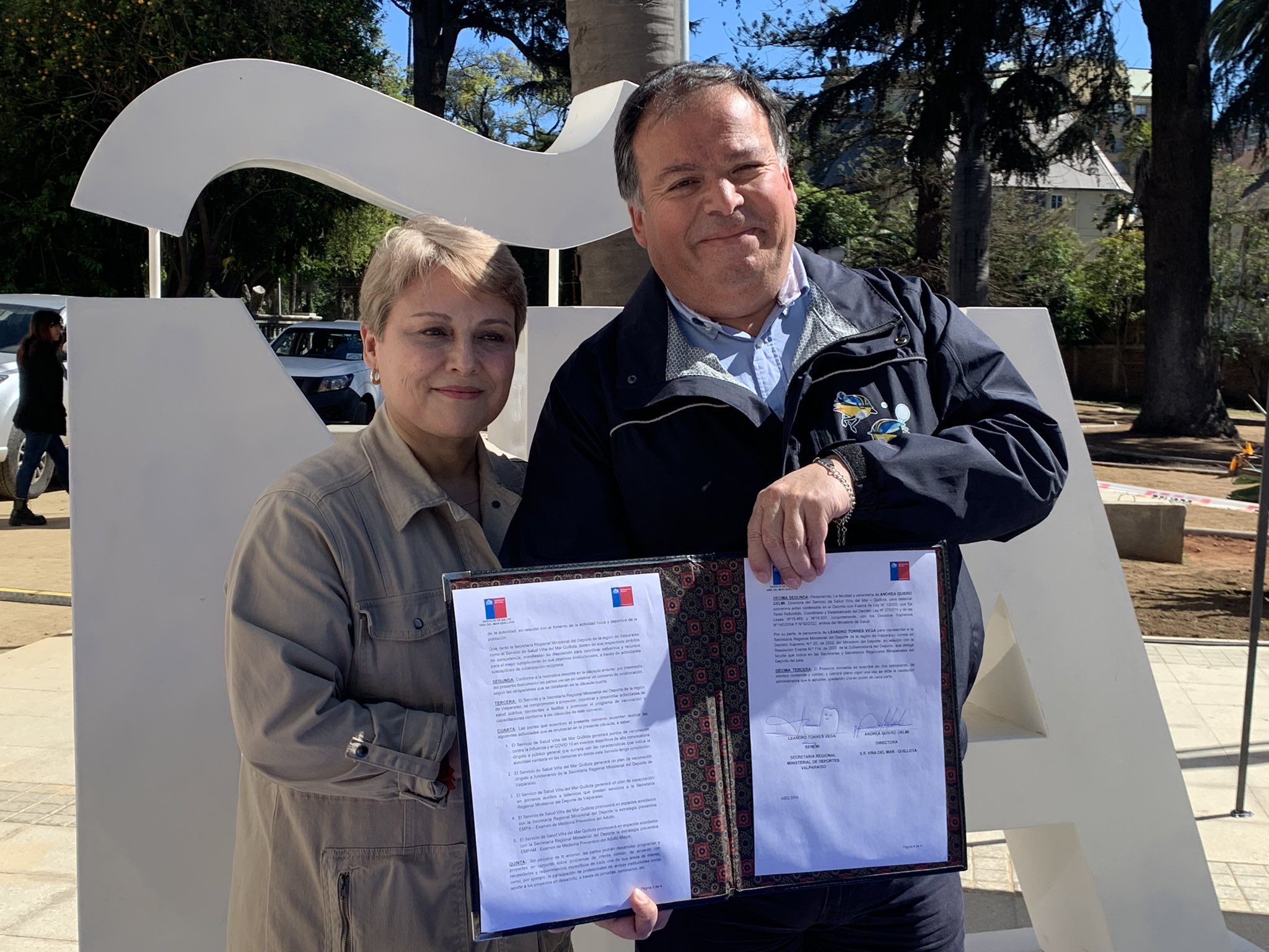 Así lo señaló el SEREMI del Deporte de la región de Valparaíso, Leandro Torres, quien comentó que: “Estamos frente a un hecho histórico, porque este convenio que estamos firmando hoy con el Servicio de Salud Viña del Mar Quillota, nos va a permitir trabajar de una manera colaborativa en distintos ámbitos, tanto en la salud como en el deporte, donde vamos a poder aprovechar las instancias que tenemos unos de otros y otros de uno. Así que estamos muy contentos de la posibilidad que nos ha dado el Servicio de Salud Viña del Mar Quillota, de firmar este convenio y vamos a seguir trabajando en beneficio de quienes son principalmente nuestros usuarios”, indicó la autoridad tras firmar el convenio colaborativo entre ambas instituciones y que permitirá generar espacios saludables y cuidar a la población usuaria del territorio