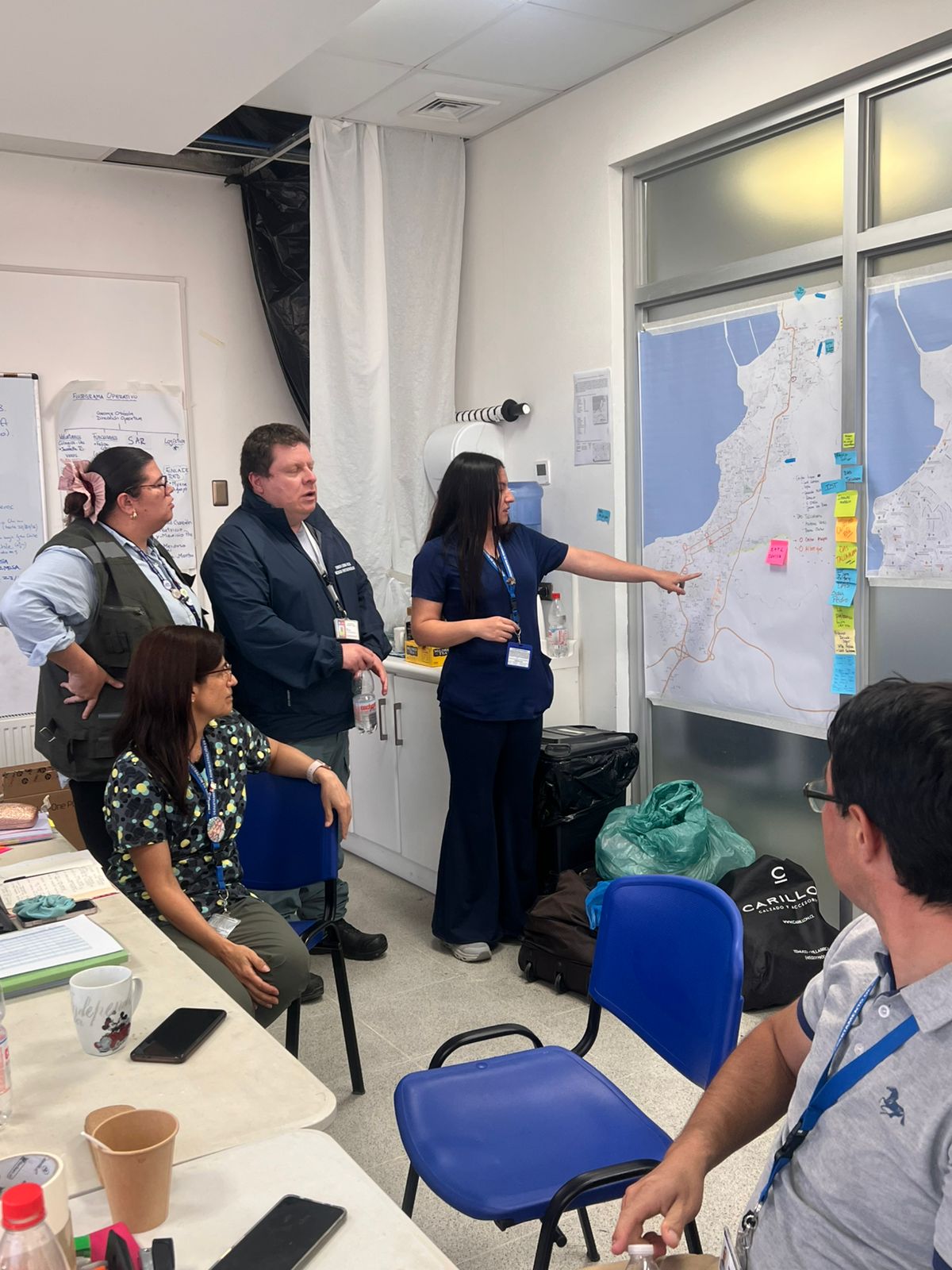 Al respecto, el Dr. Erich Liebig , Médico Coordinador de Emergencias y Desastres SSVQP destaca: “Nuestro equipo fue convocado  para ir en apoyo de las regiones de Biobío, específicamente, Talcahuano, para poder compartir algunas experiencias y aprendizajes para enfrentar la respuesta asistencial. Nosotros tuvimos la oportunidad de recibir equipos de apoyo de todo el país, cuando la emergencia nos afectó en febrero del dos mil veinticuatro, y desde entonces hemos forjado un equipo cohesionado que se alista cuando hay situaciones de emergencia para poder, por una parte, recopilar información, transformarla en conductas, en planificación, en despliegues, y a su vez, tener marcos teóricos sólidos para poder reconocer la etapa de una emergencia y ajustar cada nivel asistencial y de atención, según cómo va evolucionando esto a través del tiempo. En nuestro caso, fuimos destinados al Servicio de Salud Talcahuano, donde fuimos muy bien acogidos por el equipo local, compartimos algunas experiencias, algunas sugerencias, todo esto sobre lo que ya había trabajado para  construir y fortalecer el CICOM, que es la zona de formación y coordinación médica”