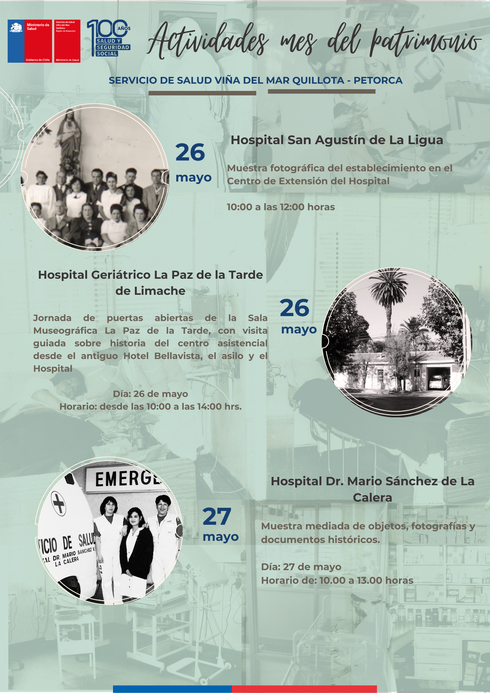 Con diversas actividades en los distintos Hospitales de la red del Servicio de Salud Viña del Mar Quillota Petorca, se celebrará el Mes del Patrimonio, concentrándose la mayor parte de las actividades, en la última semana de mayo.