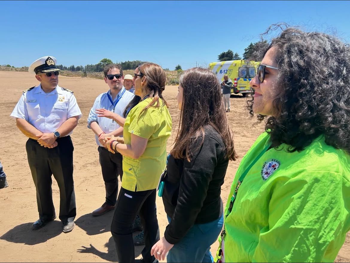 También destacó el Coordinador de esta área, Dr. Erich Liebig, “Este ejercicio en particular aborda el tema de preparación de la respuesta asistencial integrada ante asfixia por inmersión mar adentro. Esto implica tener el nivel necesario para estar preparados para reconocer una emergencia como tal, difusión de conductas de autocuidado como no bañarnos si no hay autorización de quienes corresponden para estar mar adentro, hacer caso cuando hay períodos de mayor oleaje, no exponernos a que nuestra integridad pueda verse afectada en forma negativa, y también saber hacer la activación oportuna cuando una persona pueda estar sufriendo una asfixia propiamente tal. Esto significa marcar en forma simultánea los números 137 de rescate marítimo y el 131 del SAMU o ambulancias de la red integrada. Esto permite iniciar todos los eslabones de la cadena de sobrevida para oportunamente, brindar reanimación básica, posteriormente reanimación avanzada, preparar la estabilización del paciente y llevarlo al centro asistencial que sea oportuno, pertinente y que esté disponible para brindar los cuidados de recuperación cuando sea necesario”.