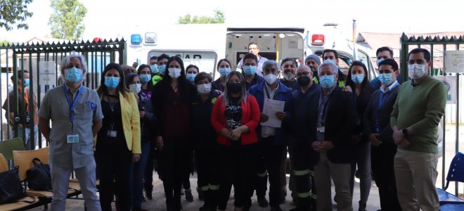 En un breve acto, el Servicio de Salud Viña del Mar Quillota, realizó la entrega formal de la ambulancia ante las autoridades municipales y también el equipo a cargo del Cesfam, quienes valoraron la entrega